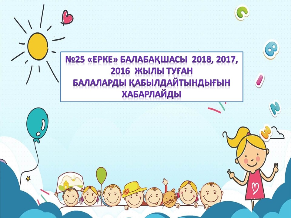 №25 «Ерке» балабақшасы 2018, 2017, 2016 жылы туған балаларды қабылдайтындығын хабарлайды
