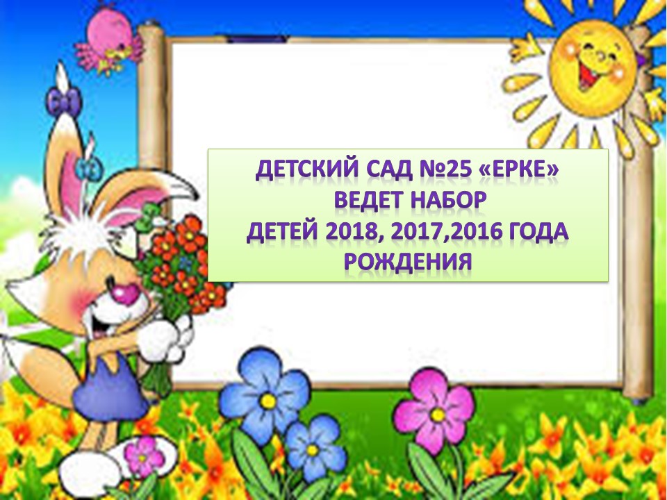 Детский сад №25 «Ерке» ведет набор детей 2018, 2017,2016 года рождения